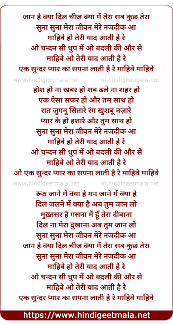 Lyrics of Mahive Ho Teree Yad Aatee Hain Re - जान है क्या दिल चीज क्या मैं तेरा सब कुछ तेरा
