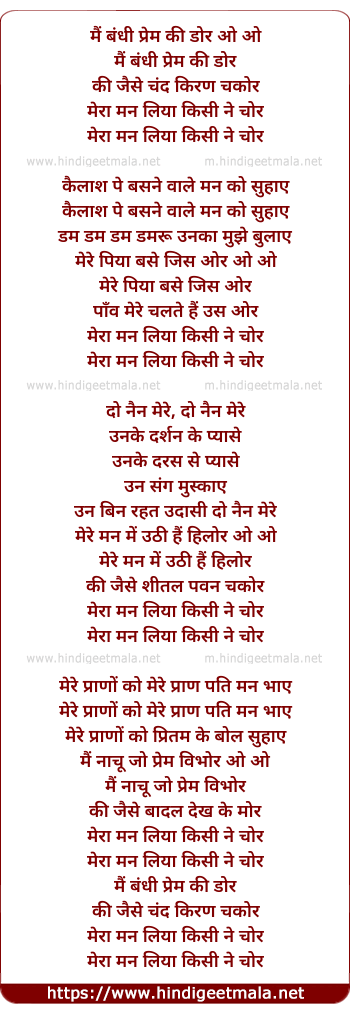 Lyrics of Mai Bandhi Prem Ki Dor - मैं बंधी प्रेम की डोर