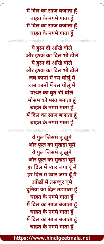 Lyrics of Mai Dil Ka Saaj Bajata Hu, Chahat - मैं दिल का साज बजाता हूँ, चाहत