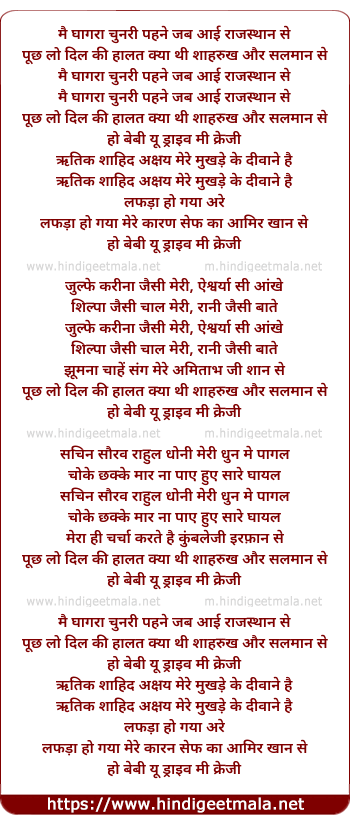 Lyrics of Mai Ghaghra Chunri Pehne - मैं घागरा चुनरी पहने