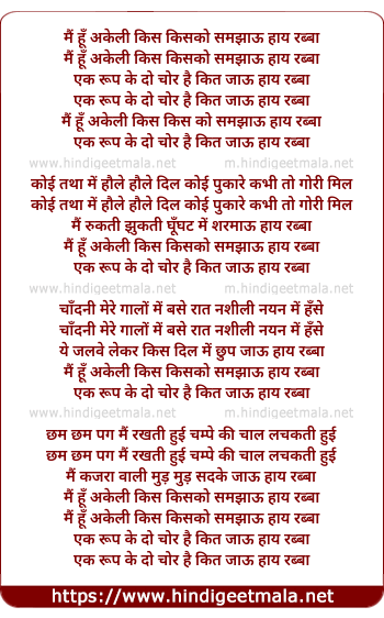 Lyrics of Mai Hu Akeli - मैं हूँ अकेली किस किसको समझाऊ हाय रब्बा