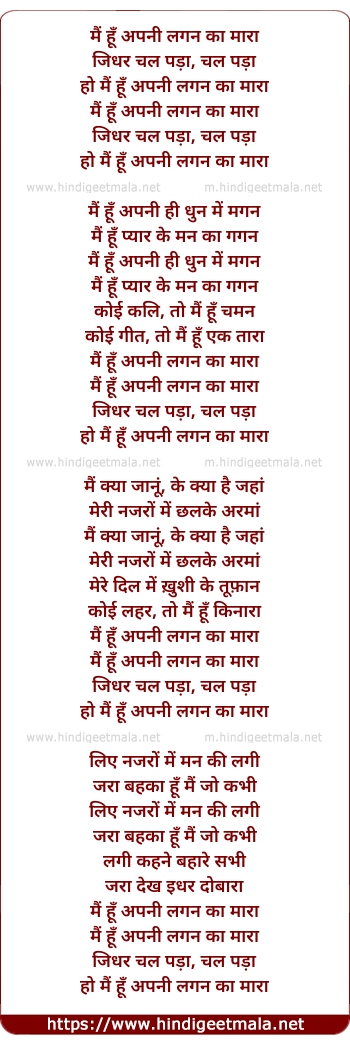 Lyrics of Mai Hu Apni Lagan Ka Mara - मैं हूँ अपनी लगन का मारा