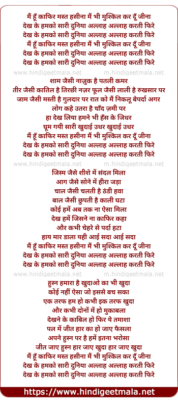 Lyrics of Mai Hu Kafir Mast Hasina - मैं हूँ काफिर मस्त हसीना