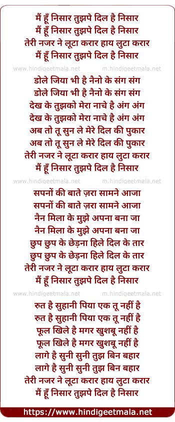 Lyrics of Mai Hu Nisaar Tujh Pe - मैं हूँ निसार तुझपे