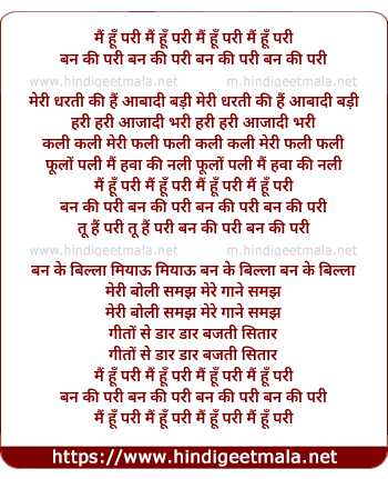 Lyrics of Mai Hu Pari Ban Ki Pari - मैं हूँ परी बन की परी