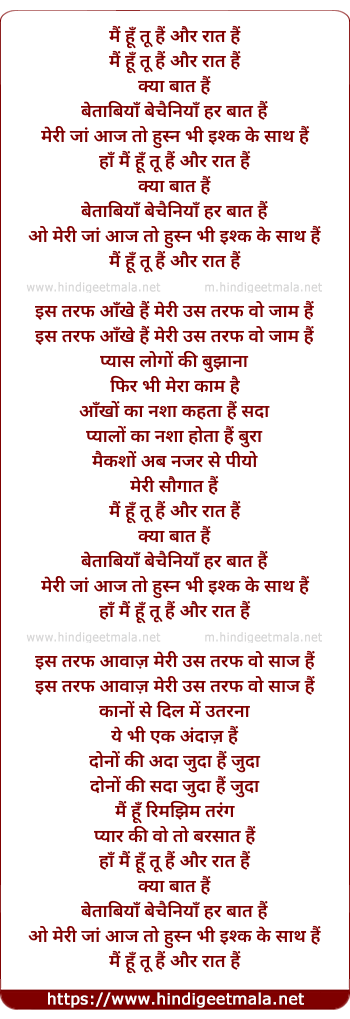 Lyrics of Main Hu Tu Hai Aur Rat Hai - मैं हूँ तू हैं और रात हैं