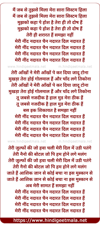 meri neend nadarat chain nadarad dil nadarad hai