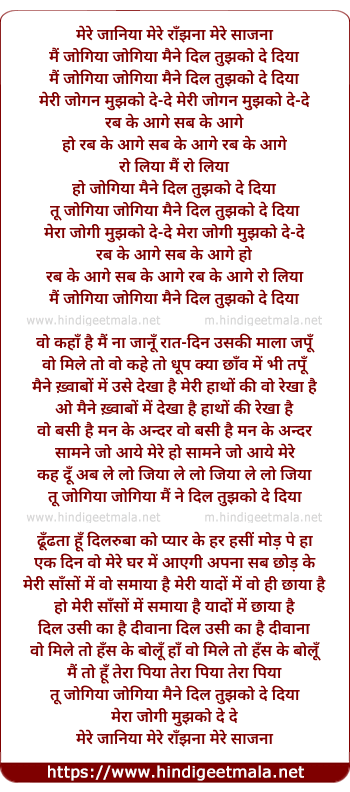 mai jogiya jogiya mai ne dil tujhko de diya