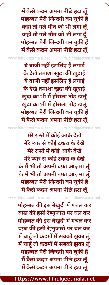 Lyrics of Mai Kaise Kadam Apna Pichhe Hata Lu - मैं कैसे कदम अपना पीछे हटा लूँ