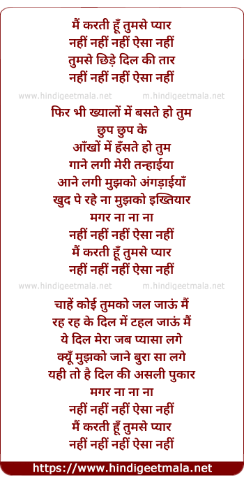 Lyrics of Mai Karti Hu Tumse Pyar - मैं करती हूँ तुमसे प्यार