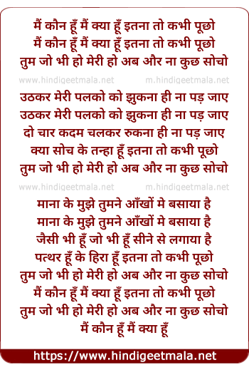 Lyrics of Mai Kaun Hu Mai Kya Hu - मैं कौन हूँ मैं क्या हूँ