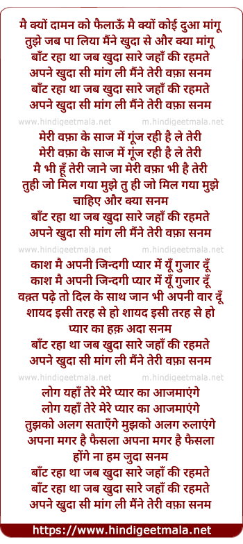 Lyrics of Mai Kyun Daman Ko Phailau - मै क्यों दामन को फैलाऊँ