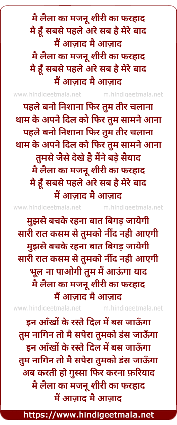 Lyrics of Mai Laila Ka Majnu - मै लैला का मजनू