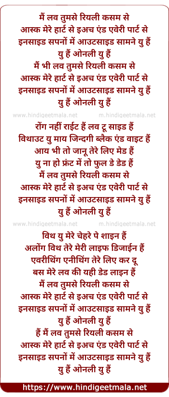 Lyrics of Mai Lov Tumse, Really Kasam Se - मैं लव तुमसे, रियली कसम से
