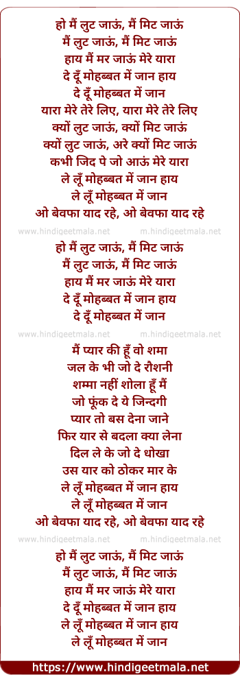 Lyrics of Mai Lut Jaau - मैं लुट जाऊं