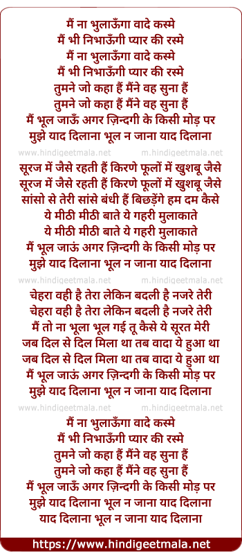 Lyrics of Mai Na Bhoolunga (Male) - मैं ना भुलूऊँगा