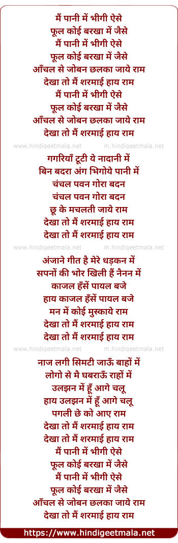 Lyrics of Mai Pani Me Bheegi Aise, Phool Koi Barkha Me Jaise - मैं पानी में भीगी ऐसे, फूल कोई बरखा में जैसे