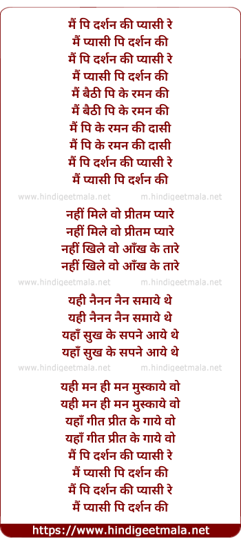 Lyrics of Mai Pee Darshan Ki Pyasi Re - मैं पि दर्शन की प्यासी रे