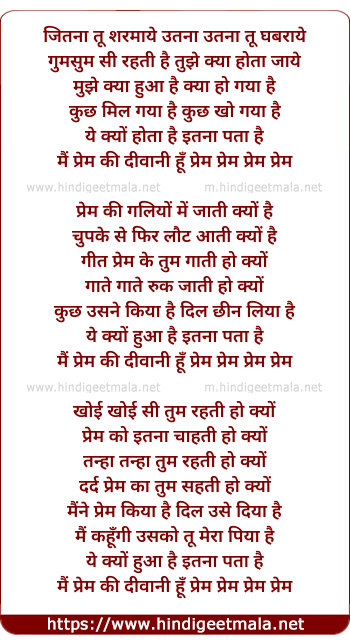 mai prem kee diwani hu prem prem prem prem