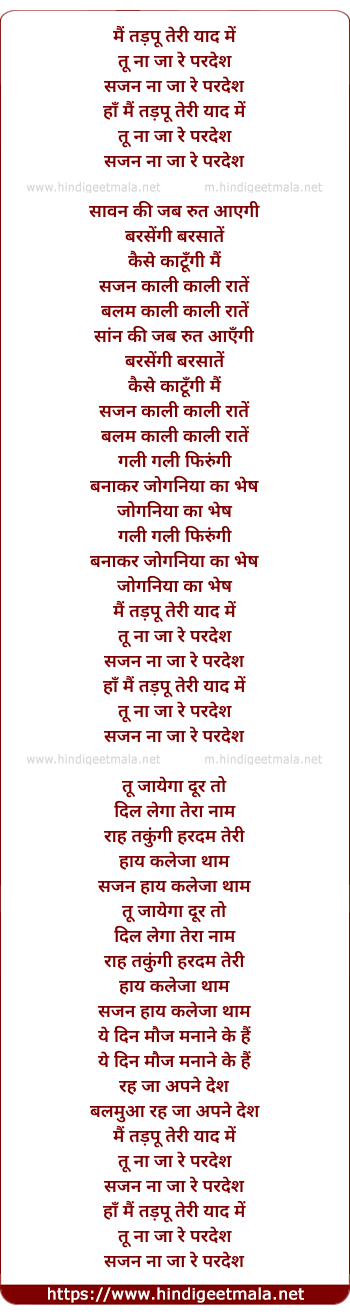 Lyrics of Mai Tadpu Teri Yaad Me - मैं तड़पू तेरी याद में