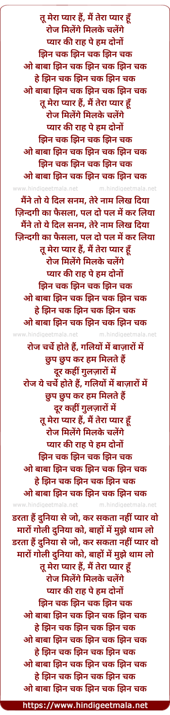 Lyrics of Mai Tera Pyar Hu - तू मेरा प्यार हैं, मैं तेरा प्यार हूँ