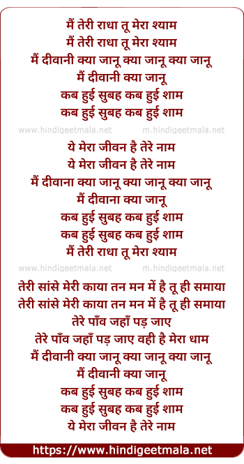 Lyrics of Mai Tere Radha Tu Mera Shyam - मैं तेरी राधा तू मेरा श्याम