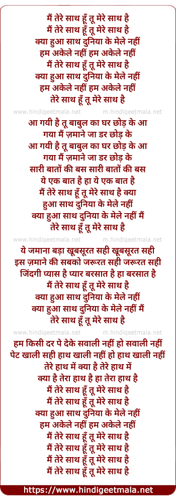 Lyrics of Main Tere Sath Hu, Tu Mere Sath Hai - मैं तेरे साथ हूँ, तू मेरे साथ है