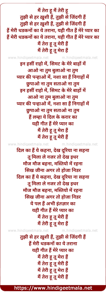 Lyrics of Mai Teri Hu - मैं तेरा हूँ
