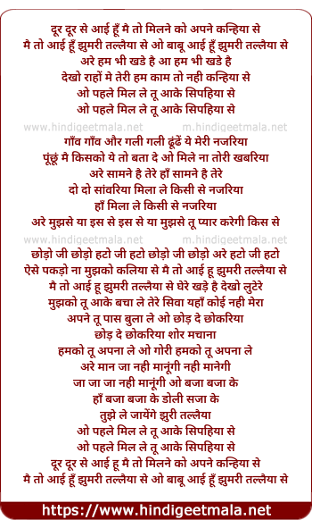 Lyrics of Mai To Aayi Hu Zhumri Taliya Se - मैं तो आई हूँ झुमरी तल्लैया से