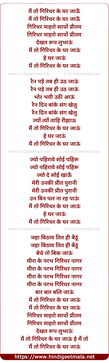 Lyrics of Mai To Girdhar Ke Ghar Jau - मैं तो गिरिधर के घर जाऊँ