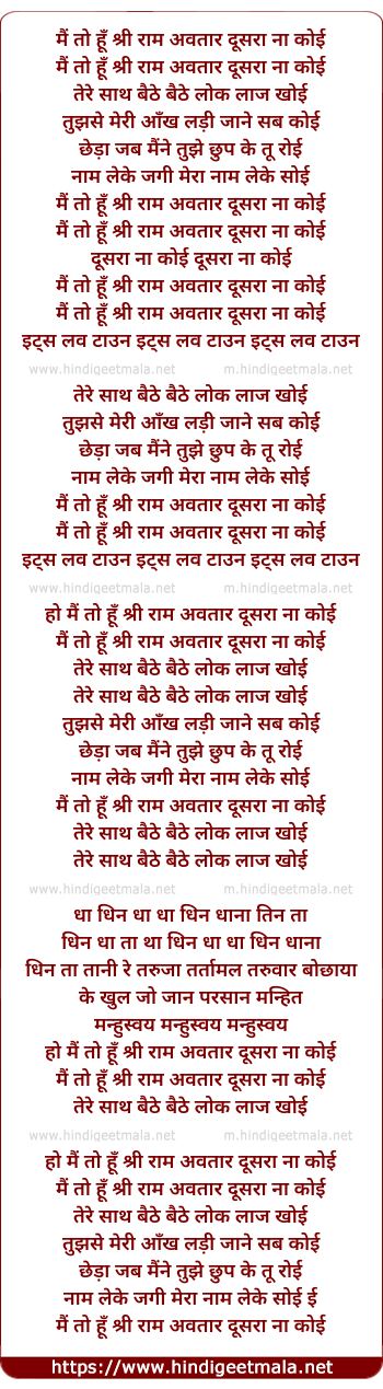 Lyrics of Mai To Hu Shri Ram Avtaar - मैं तो हूँ श्री राम अवतार