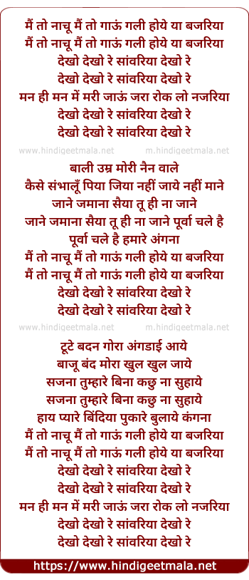 Lyrics of Mai To Nachu Mai To Gaau - मैं तो नाचू मैं तो गाऊं