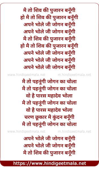 Lyrics of Mai To Shiv Ki Pujarin Banungi - मैं तो शिव की पुजारन बनूँगी