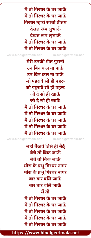 Lyrics of Main To Giradhar Ke Ghar Jau - मैं तो गिरधर के घर जाऊँ