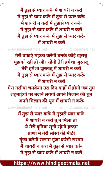 Lyrics of Mai Tujh Se Pyar Karu (Female) - मैं तुझ से प्यार करूँ