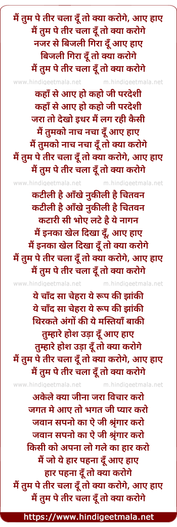 Lyrics of Mai Tum Pe Teer Chala Du - मैं तुम पे तीर चला दूँ