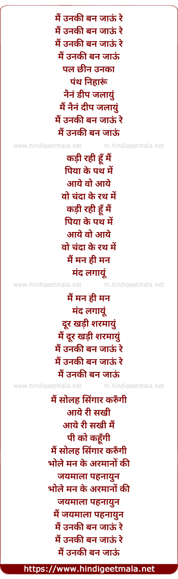 Lyrics of Mai Unki Ban Jaau Re - मैं उनकी बन जाऊं रे
