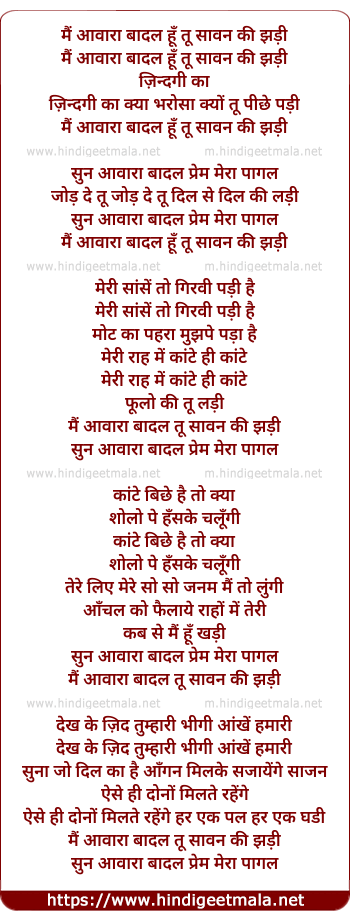 Lyrics of Main Aawara Baadal - मैं आवारा बादल