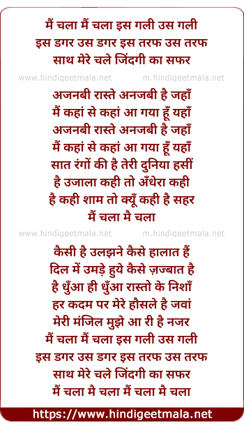 Lyrics of Main Chala, Main Chala......... - मैं चला मैं चला