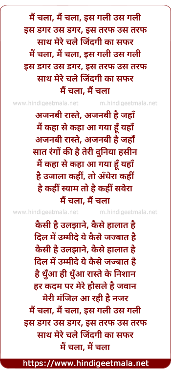 Lyrics of Main Chala, Main Chala - मैं चला, मैं चला