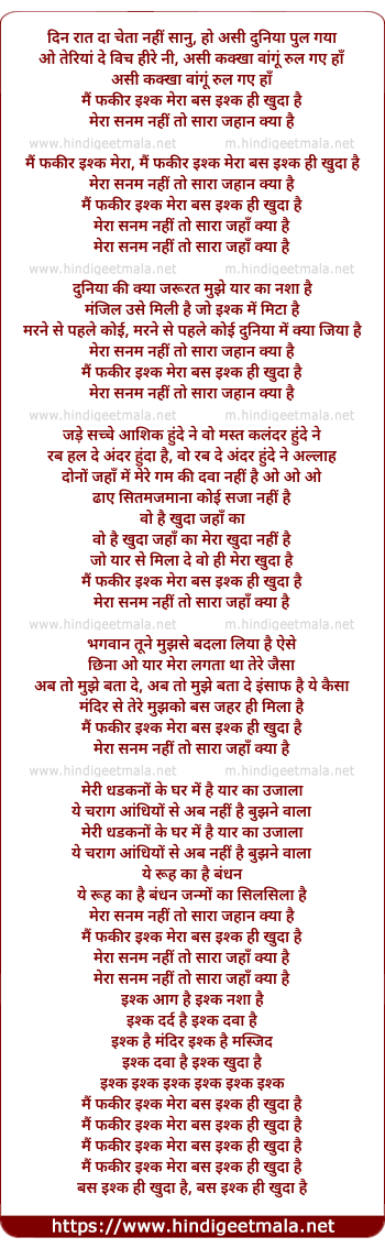 main fakir ishq mera, main fakir ishq mera bas ishq hi khuda hai