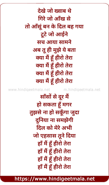 Lyrics of Main Hoon Hero Tera - मैं हूँ हीरो तेरा