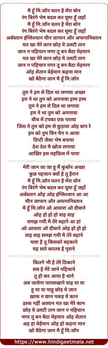 Lyrics of Main Hoon Mr. John