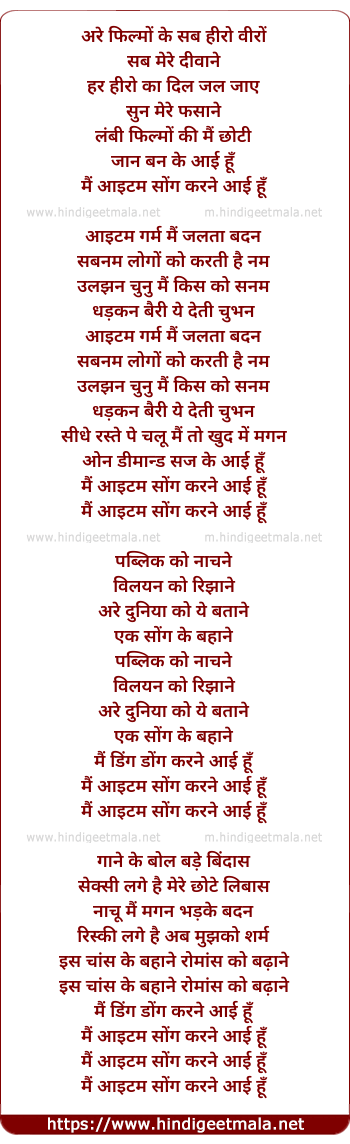Lyrics of Main Item Song Karne Aayi Hoon - मैं आइटम सोंग करने आई हूँ