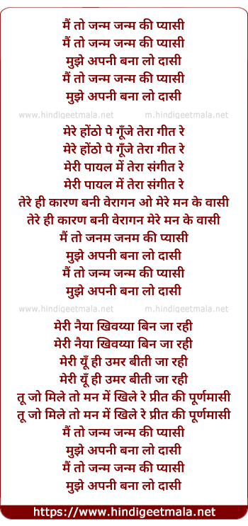 Lyrics of Main Janam Janam Ki Pyasi - मैं जन्म जन्म की प्यासी