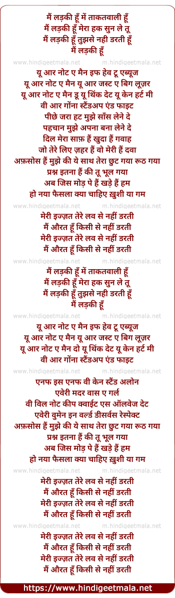 Lyrics of Main Ladki Hoon - मैं लड़की हूँ में ताकतवाली हूँ
