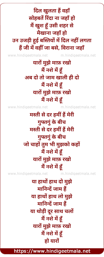 Poetic Translation - Lyrics of Main Nashe Main Hu - दिल खुलता हैं वहाँ