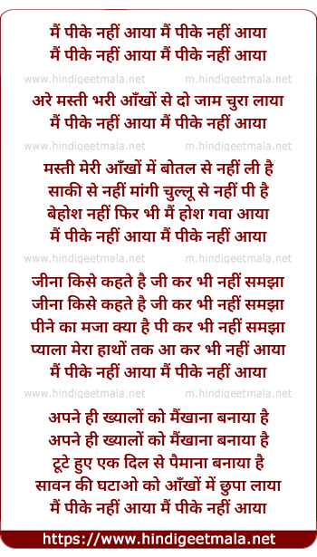 Lyrics of Main Peeke Nahin Aaya - मैं पीके नहीं आया