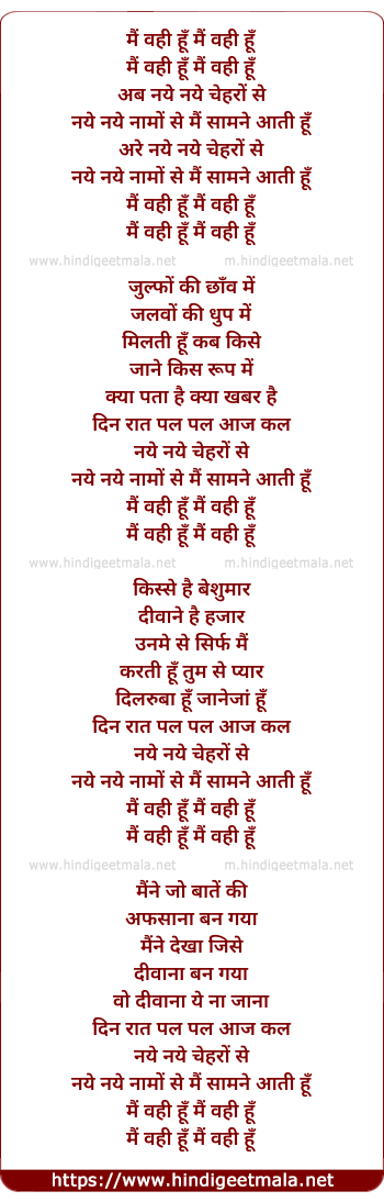 Lyrics of Main Wahi Hu - मैं वही हूँ