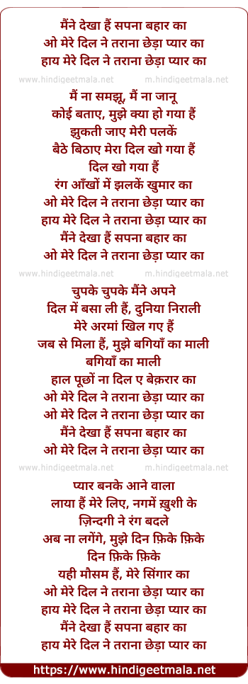Lyrics of Maine Dekha Hai Sapna Bahar Ka - मैंने देखा हैं सपना बहार का